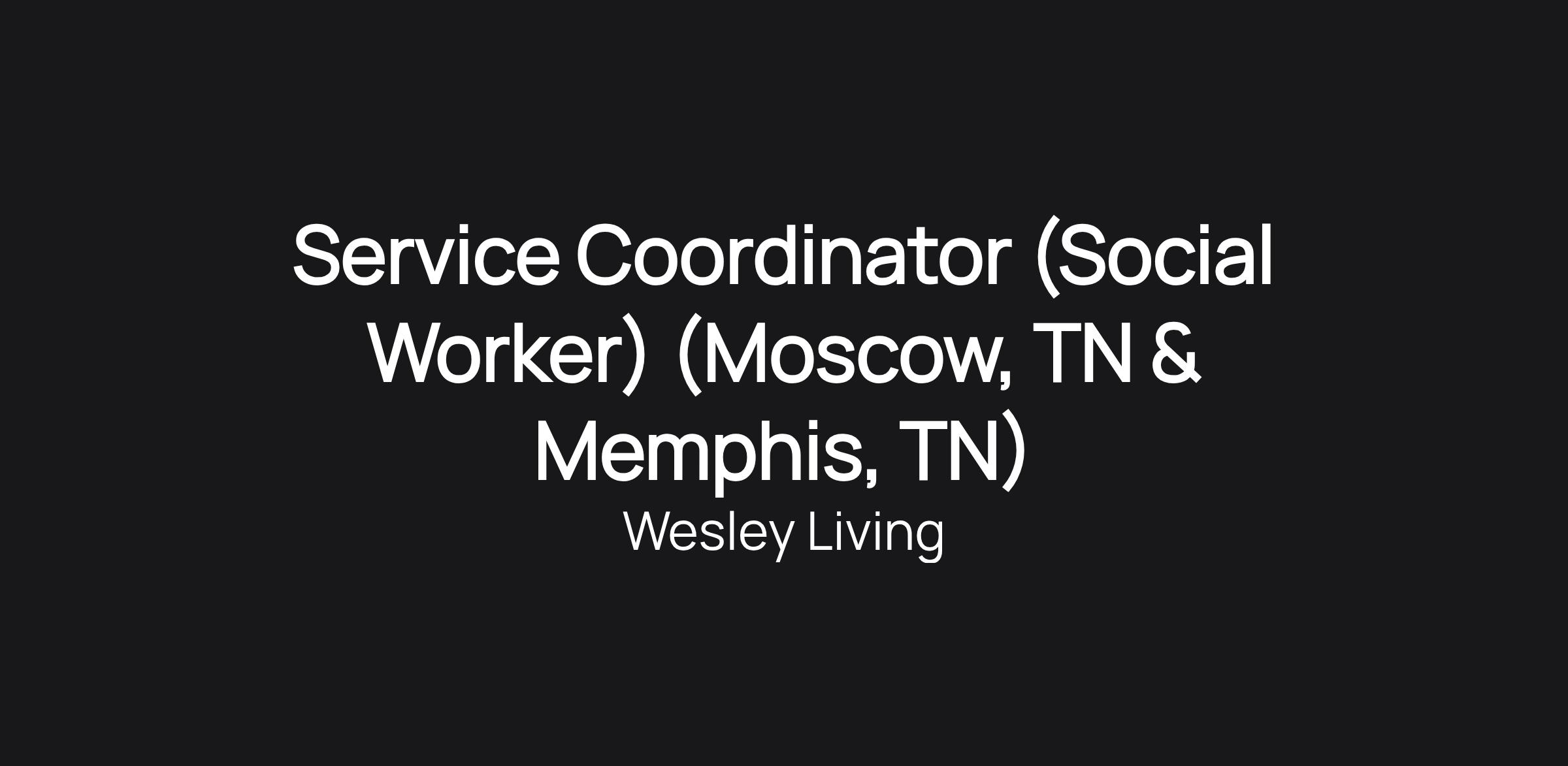 Service Coordinator (Social Worker) (Moscow, TN & Memphis, TN)