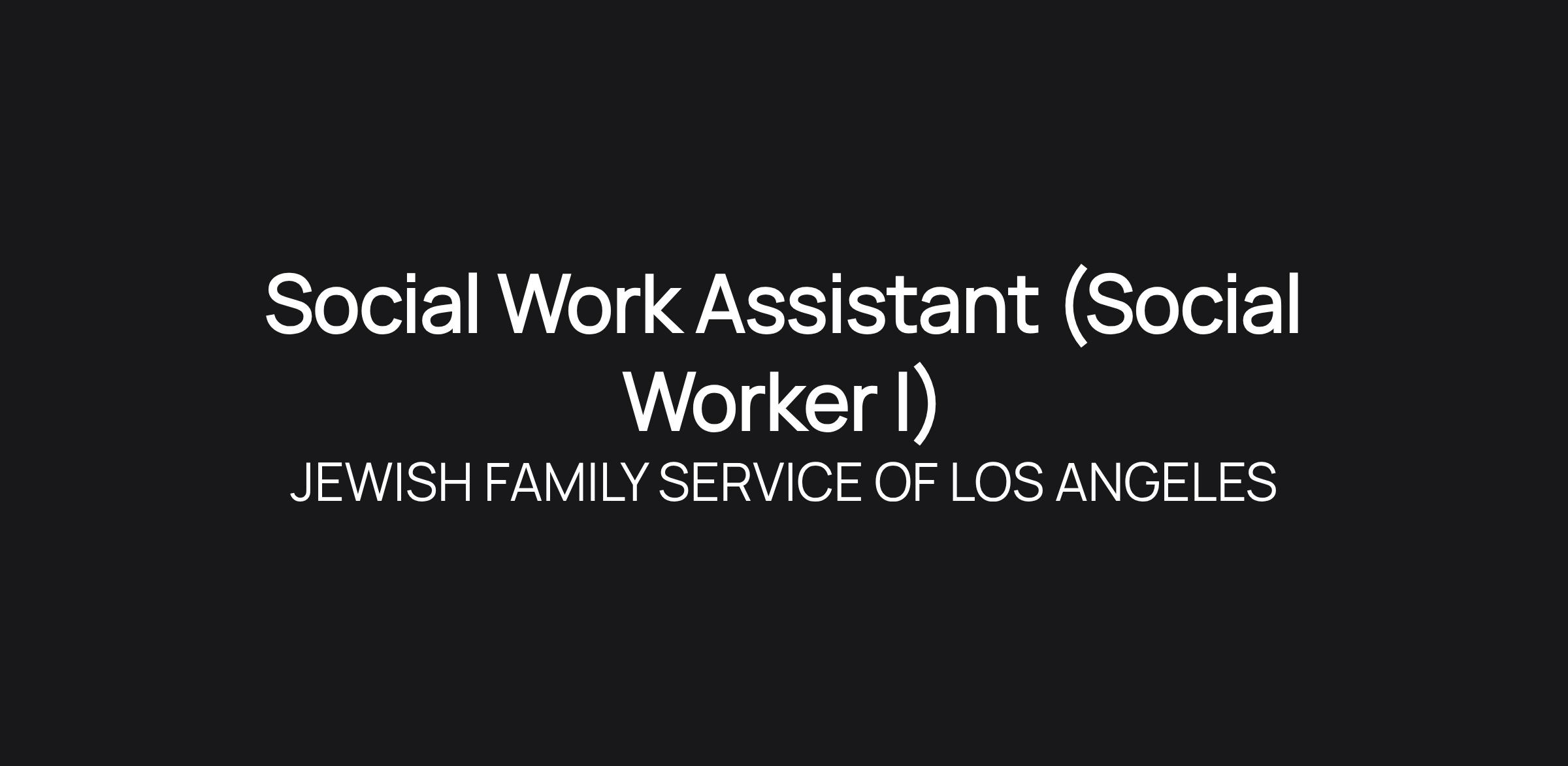 Social Work Assistant (Social Worker I)