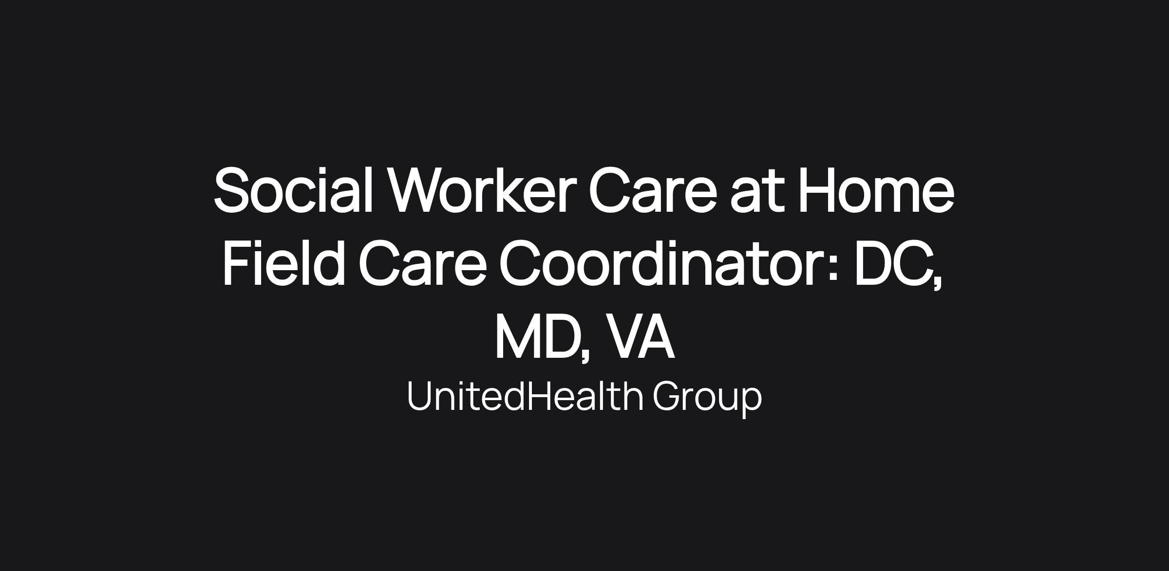 Social Worker Care at Home Field Care Coordinator: DC, MD, VA