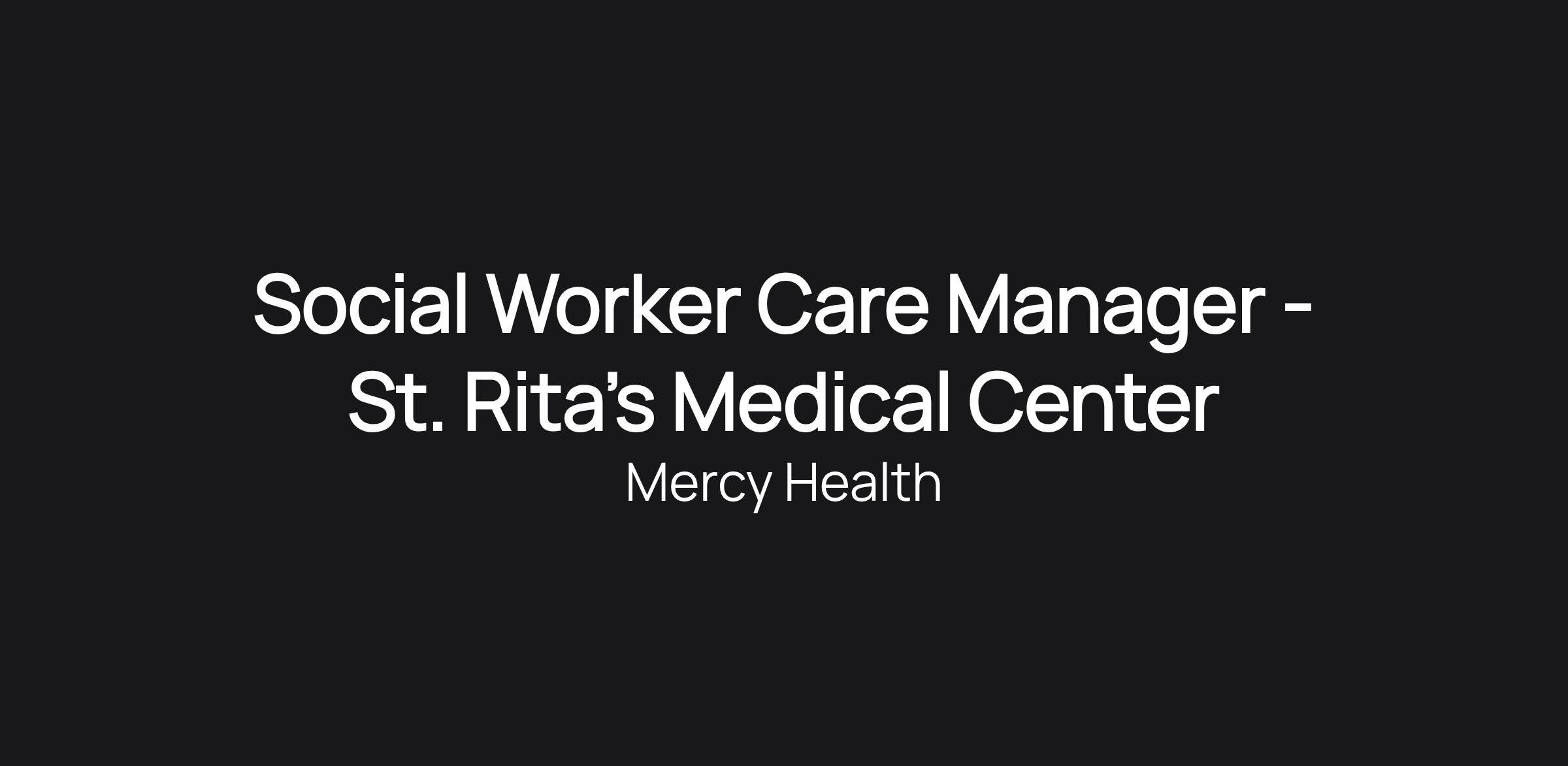 Social Worker - Care Manager St. Rita's Medical Center