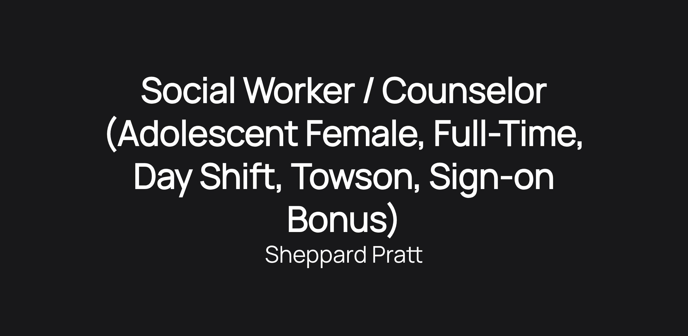 Social Worker / Counselor (Adolescent Female, Full-Time, Day Shift, Towson, Sign-on Bonus)
