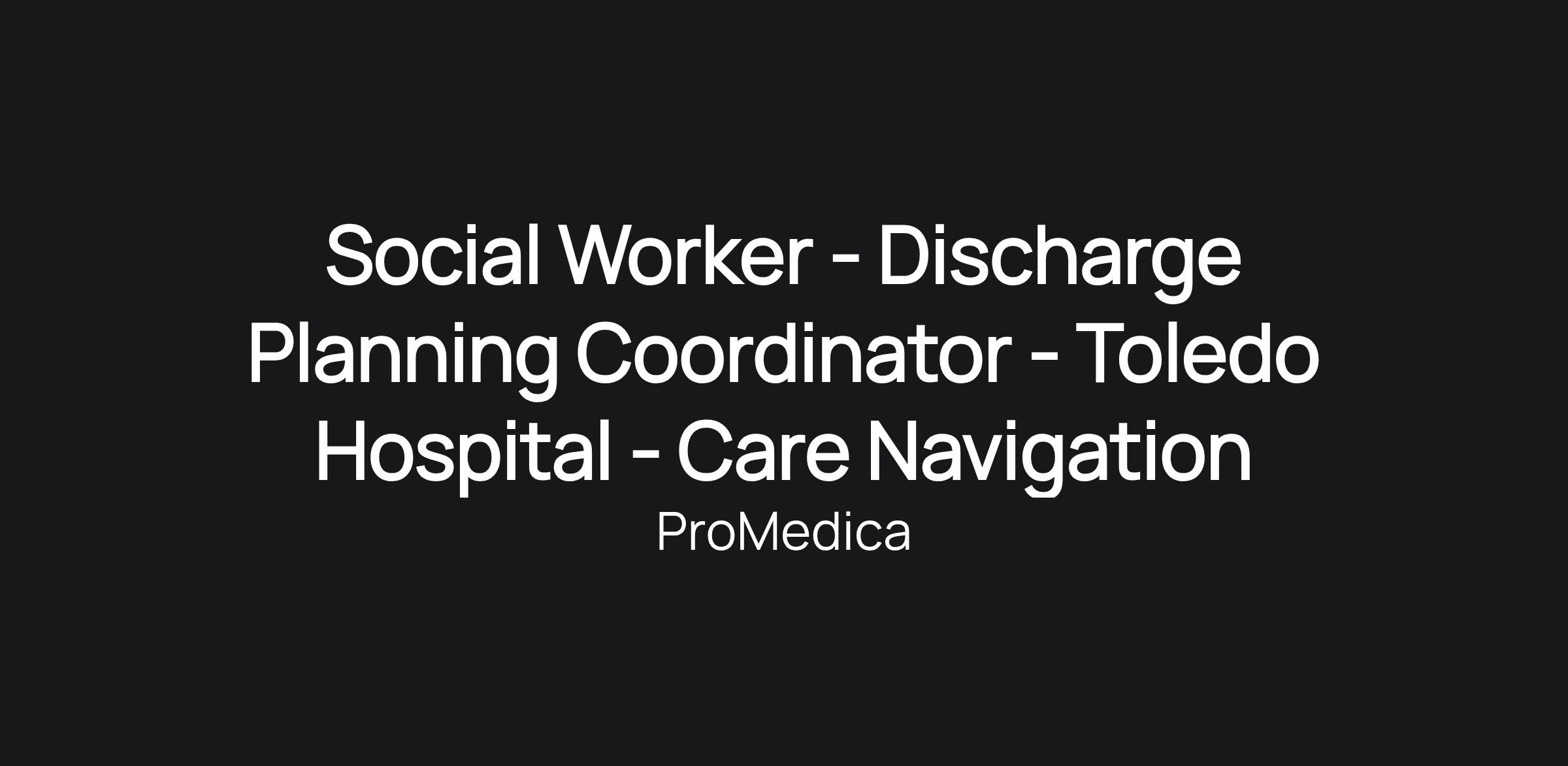 Social Worker - Discharge Planning Coordinator - Toledo Hospital - Care Navigation