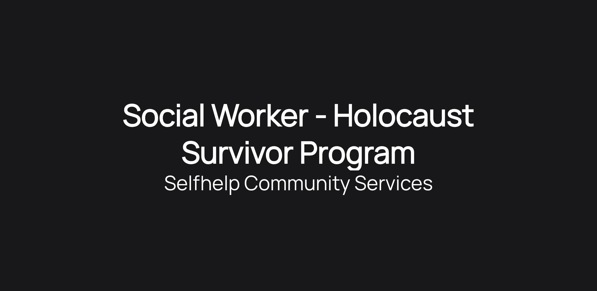 Social Worker - Holocaust Survivor Program