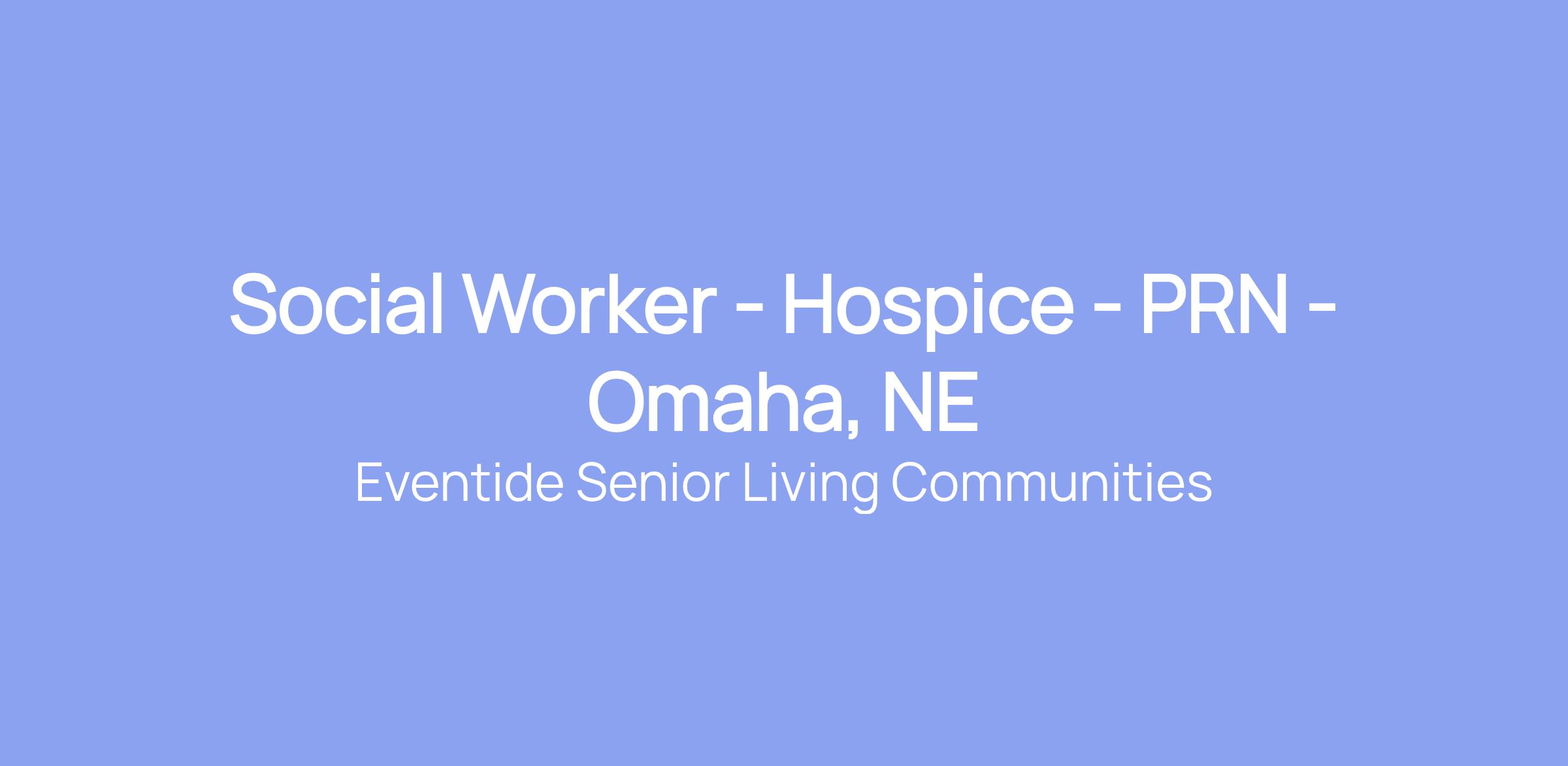 Social Worker - Hospice - PRN - Omaha, NE