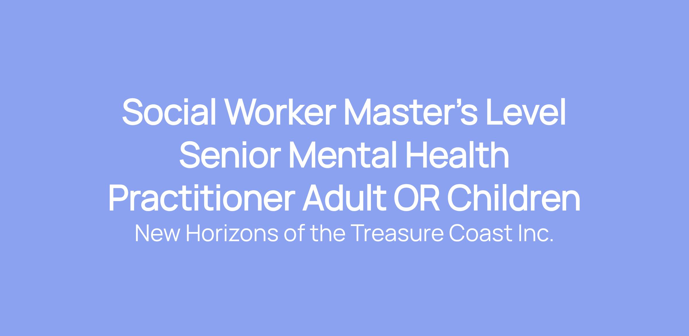 Social Worker Master's Level Senior Mental Health Practitioner Adult OR Children
