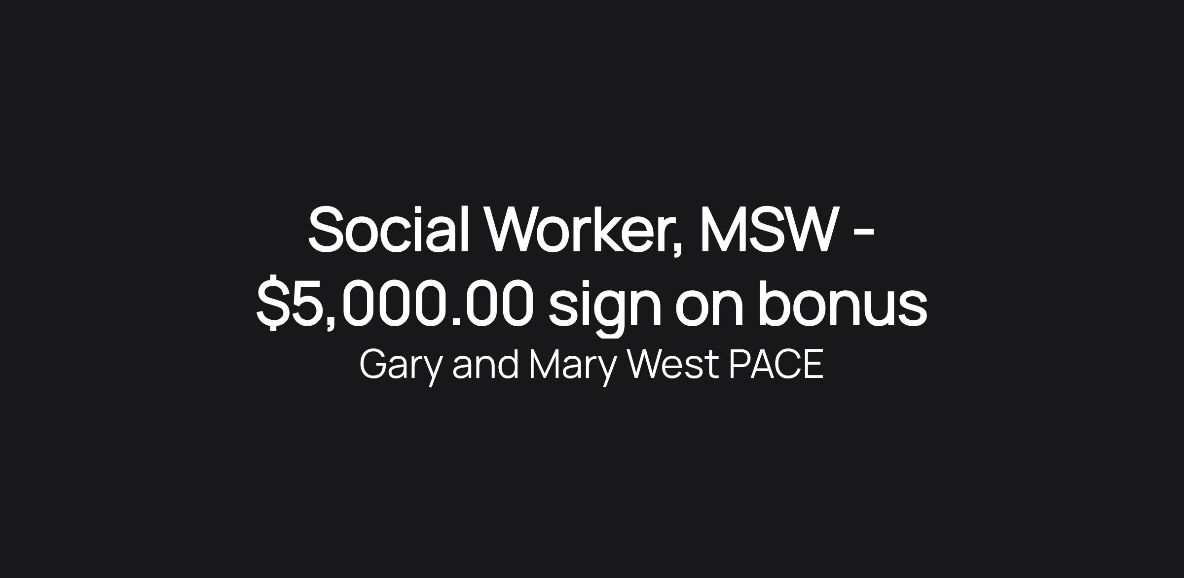 Social Worker, MSW - $5,000.00 sign on bonus