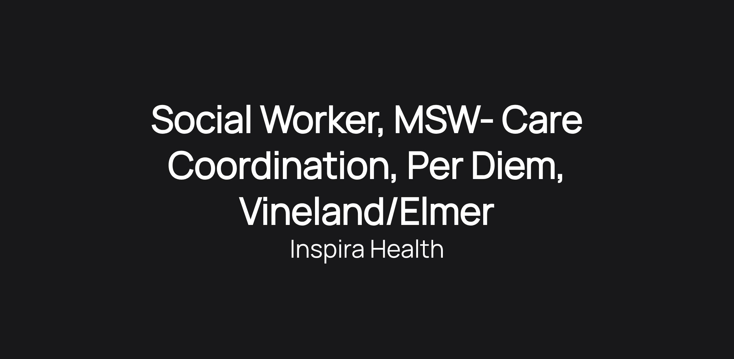 Social Worker, MSW- Care Coordination, Per Diem, Vineland/Elmer