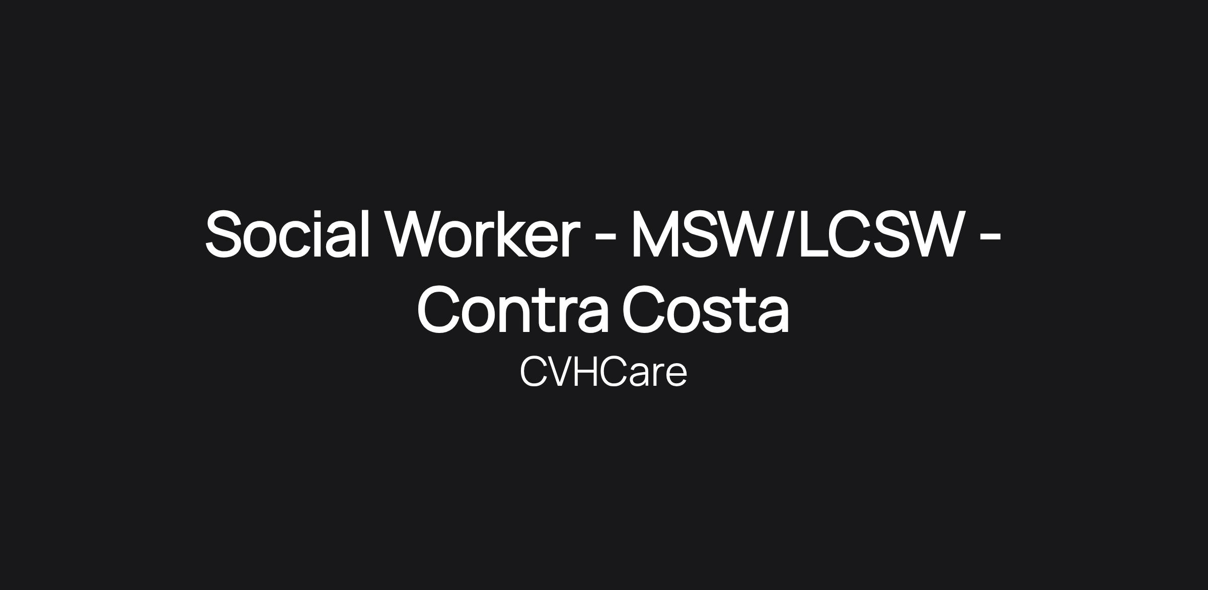 CVHCare, a leader in Home Health Clinical services, headquartered in beautiful San Ramon CA, is currently seeking a Social Worker - MSW/LCSW to join our Home Health Care Agency located in San Ramon, CA. This is a great opportunity to join an established leader in the California home health industry, with the freedom to put your skills and imagination to work. We are Compassionate Visionary Health Care, where passion and team spirit are nurtured and rewarded.