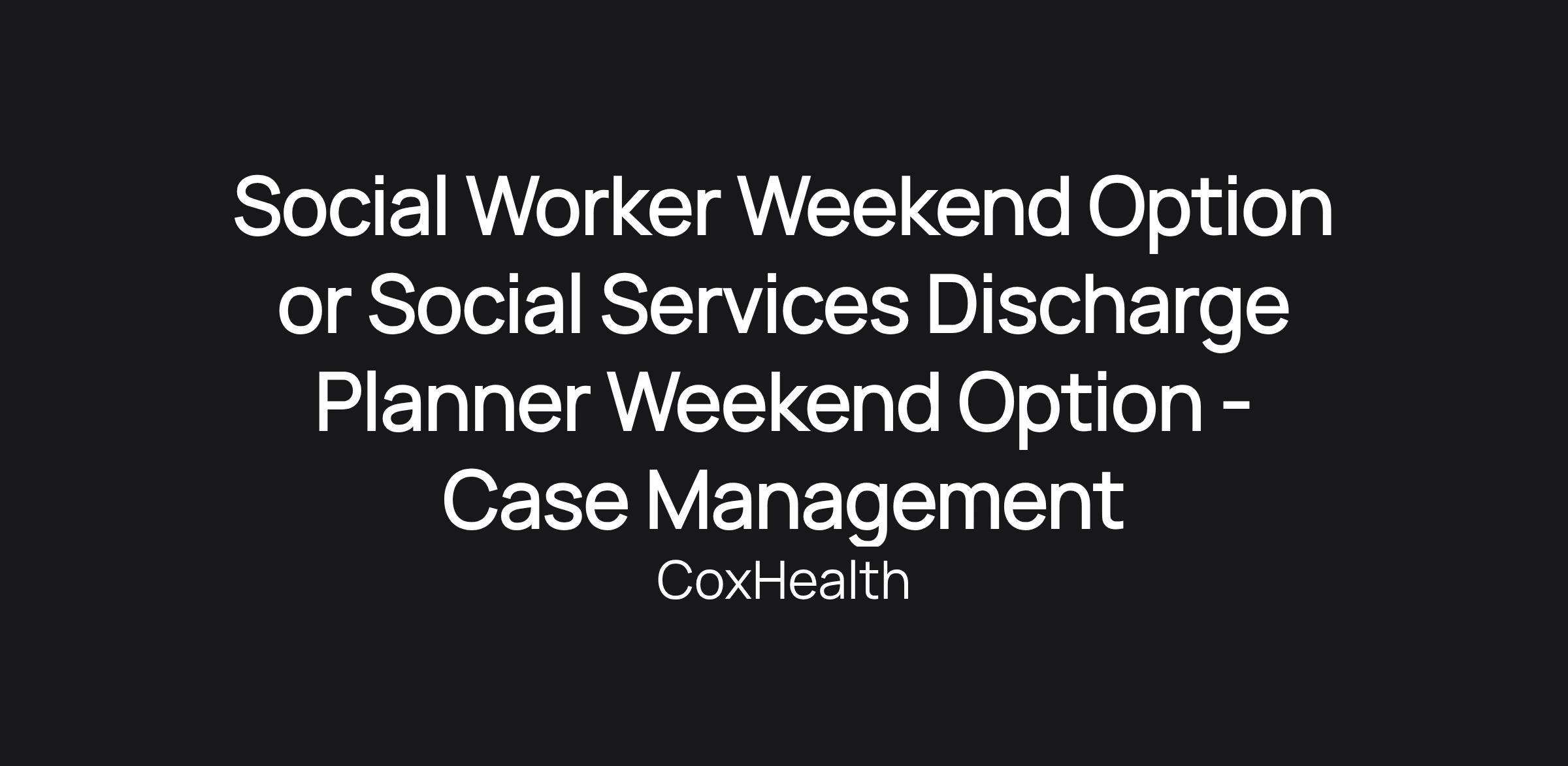 Social Worker Weekend Option or Social Services Discharge Planner Weekend Option - Case Management