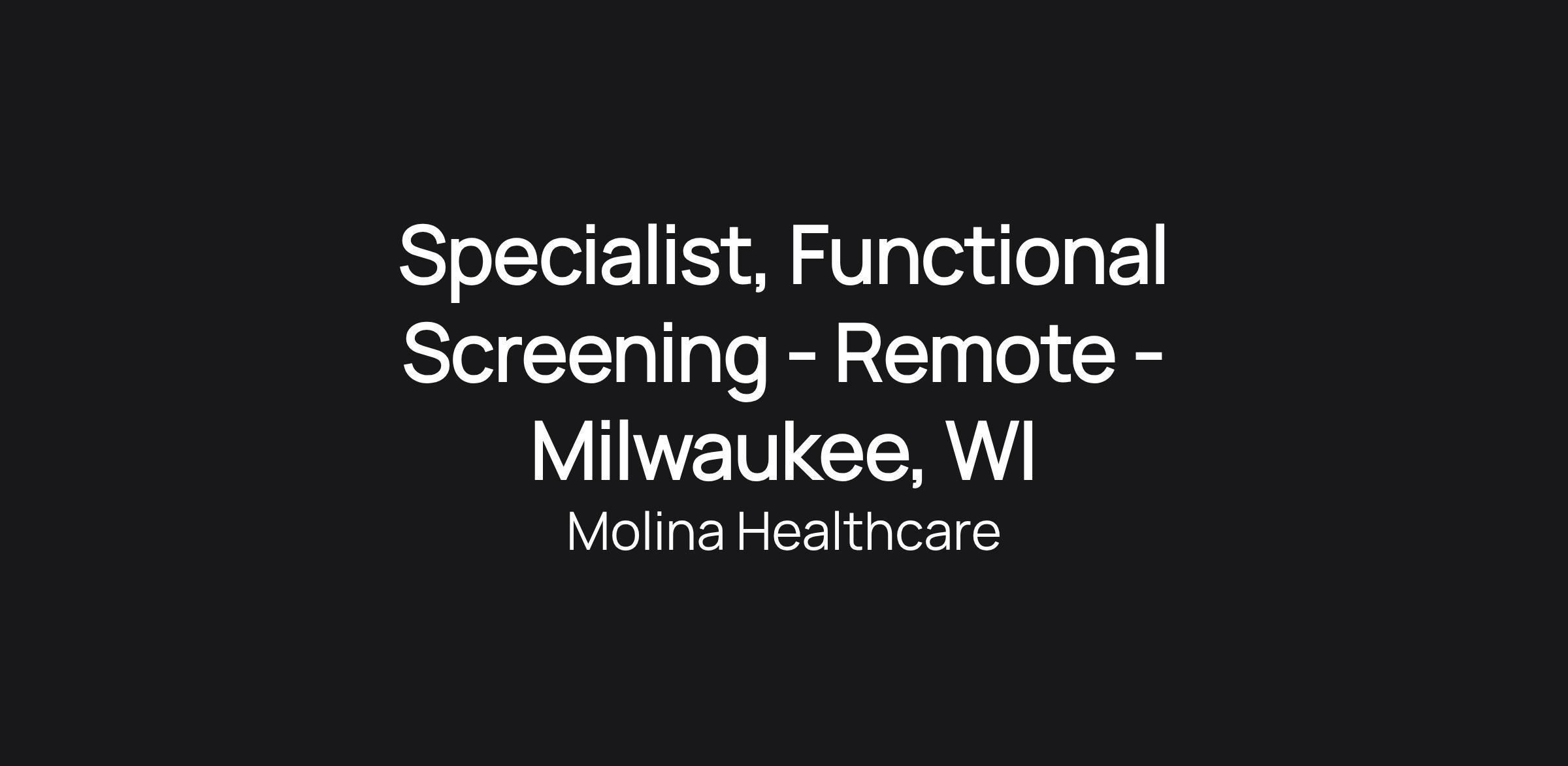 Specialist, Functional Screening - Remote - Milwaukee, WI
