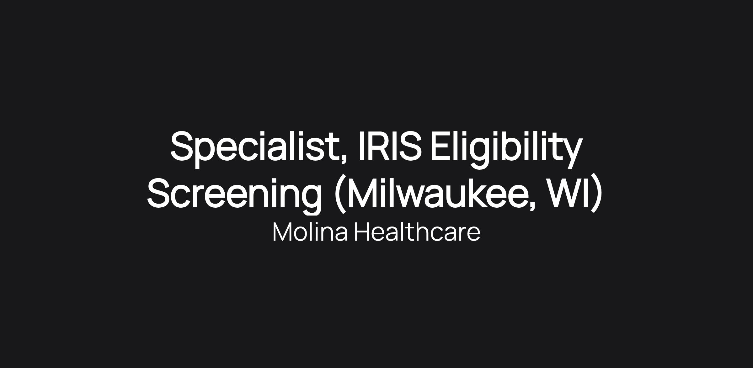 Specialist, IRIS Eligibility Screening (Milwaukee, WI)