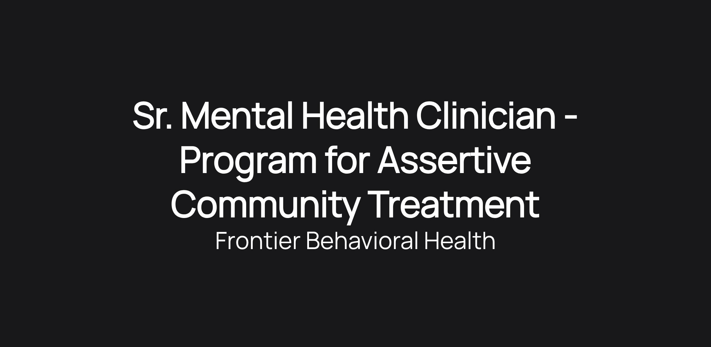 Sr. Mental Health Clinician - Program for Assertive Community Treatment