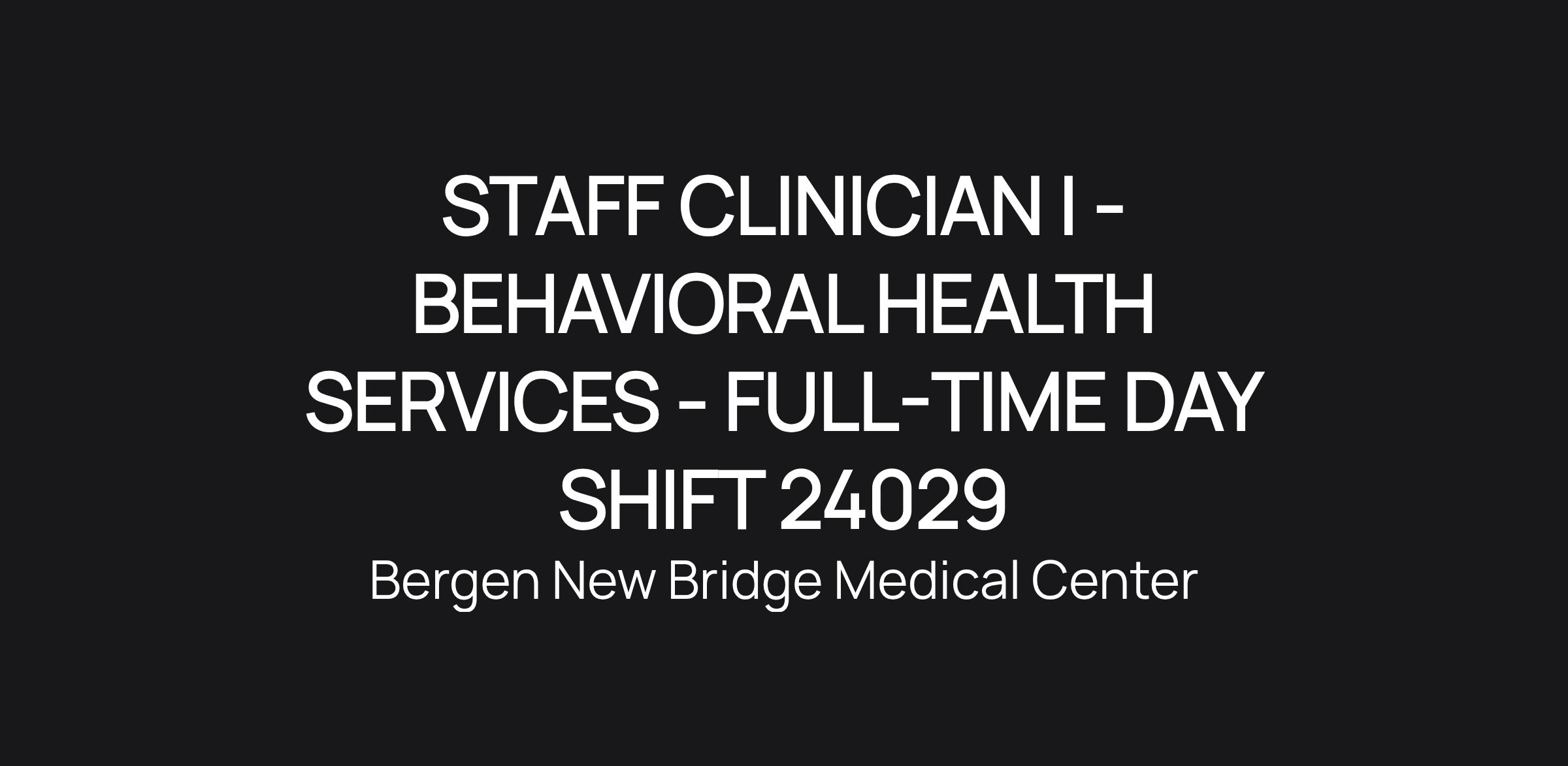 STAFF CLINICIAN I - BEHAVIORAL HEALTH SERVICES - FULL-TIME DAY SHIFT 24029