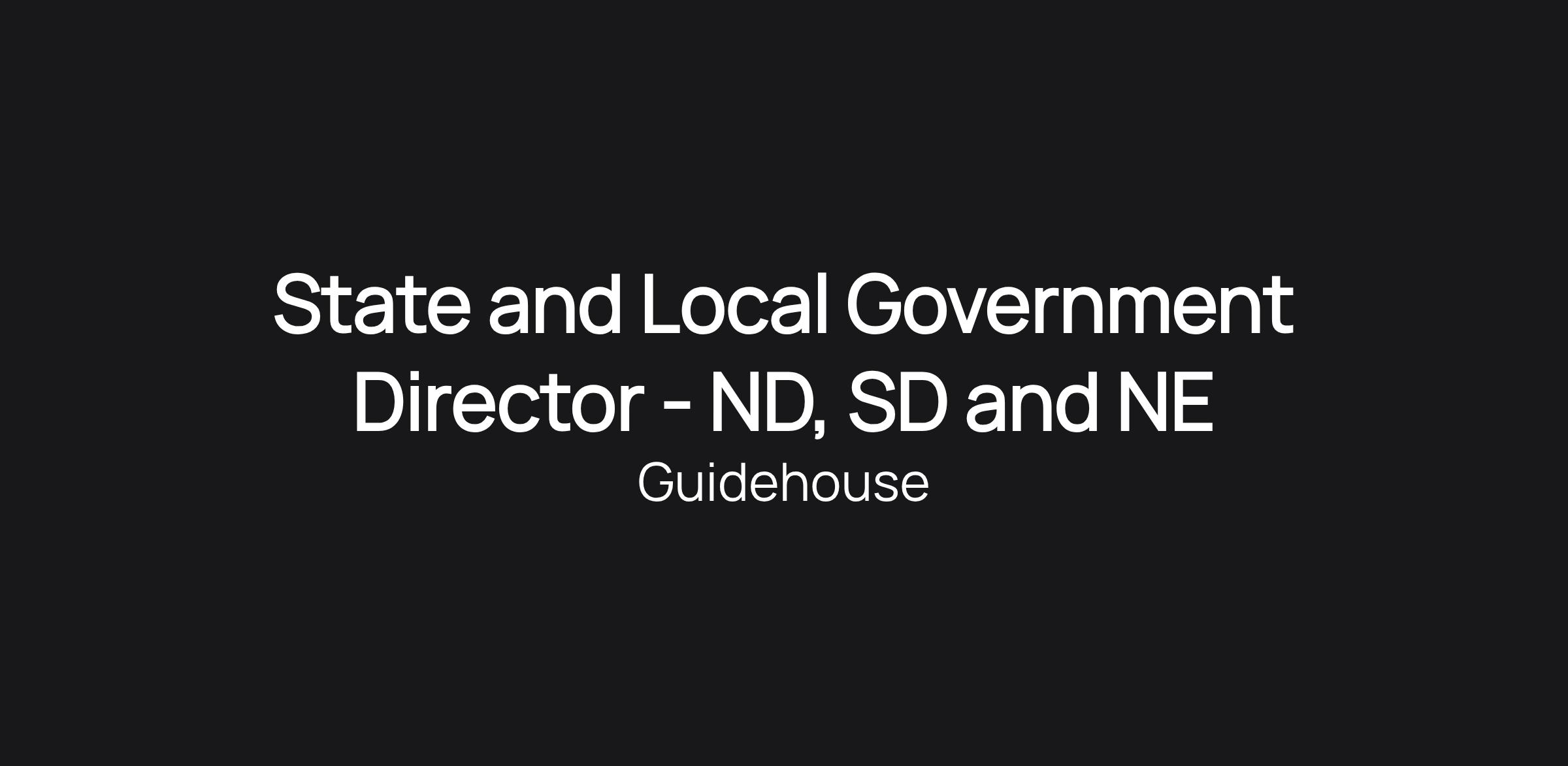 Guidehouse is seeking a Director to join its State and Local Government Practice to support State and Local Government Clients in North Dakota, South Dakota and Nebraska.