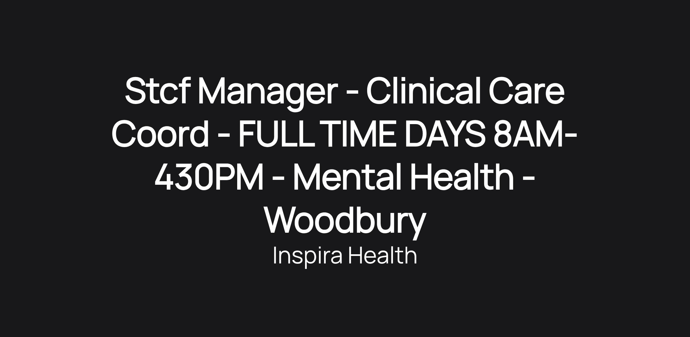 Stcf Manager - Clinical Care Coord - FULL TIME DAYS 8AM-430PM - Mental Health - Woodbury