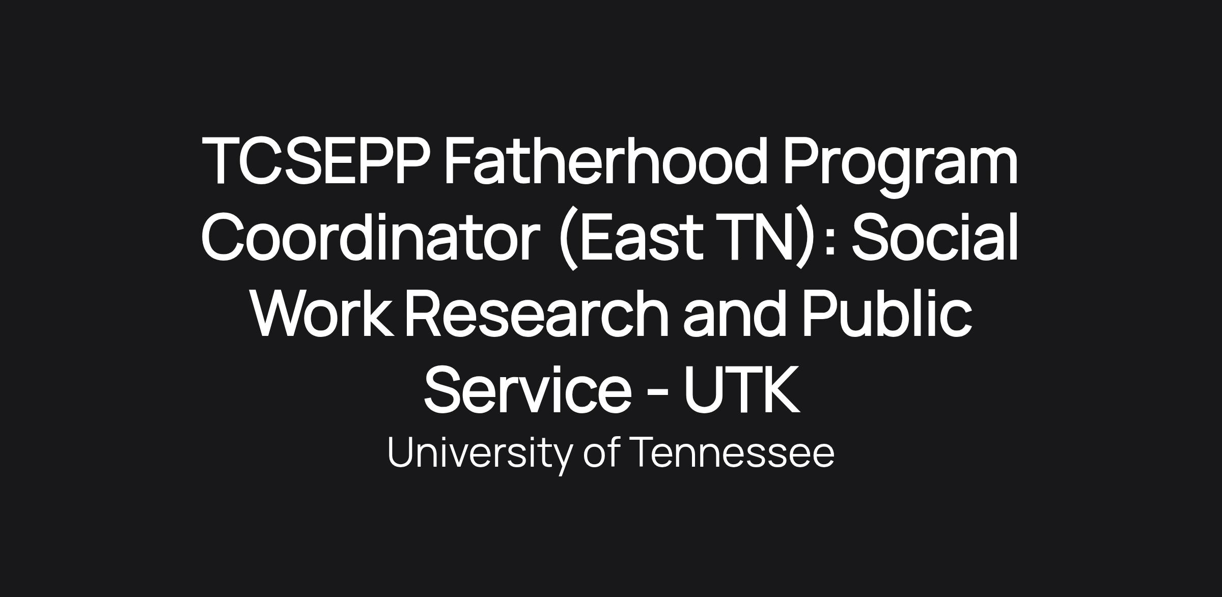 TCSEPP Fatherhood Program Coordinator (East TN): Social Work Research and Public Service - UTK
