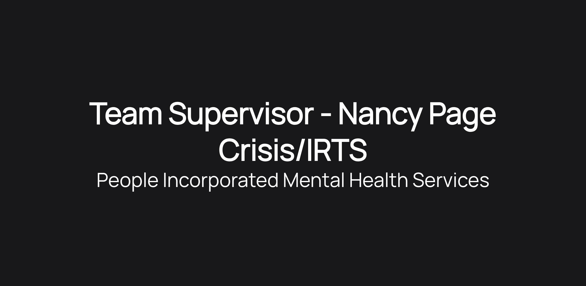 Team Supervisor - Nancy Page Crisis/IRTS