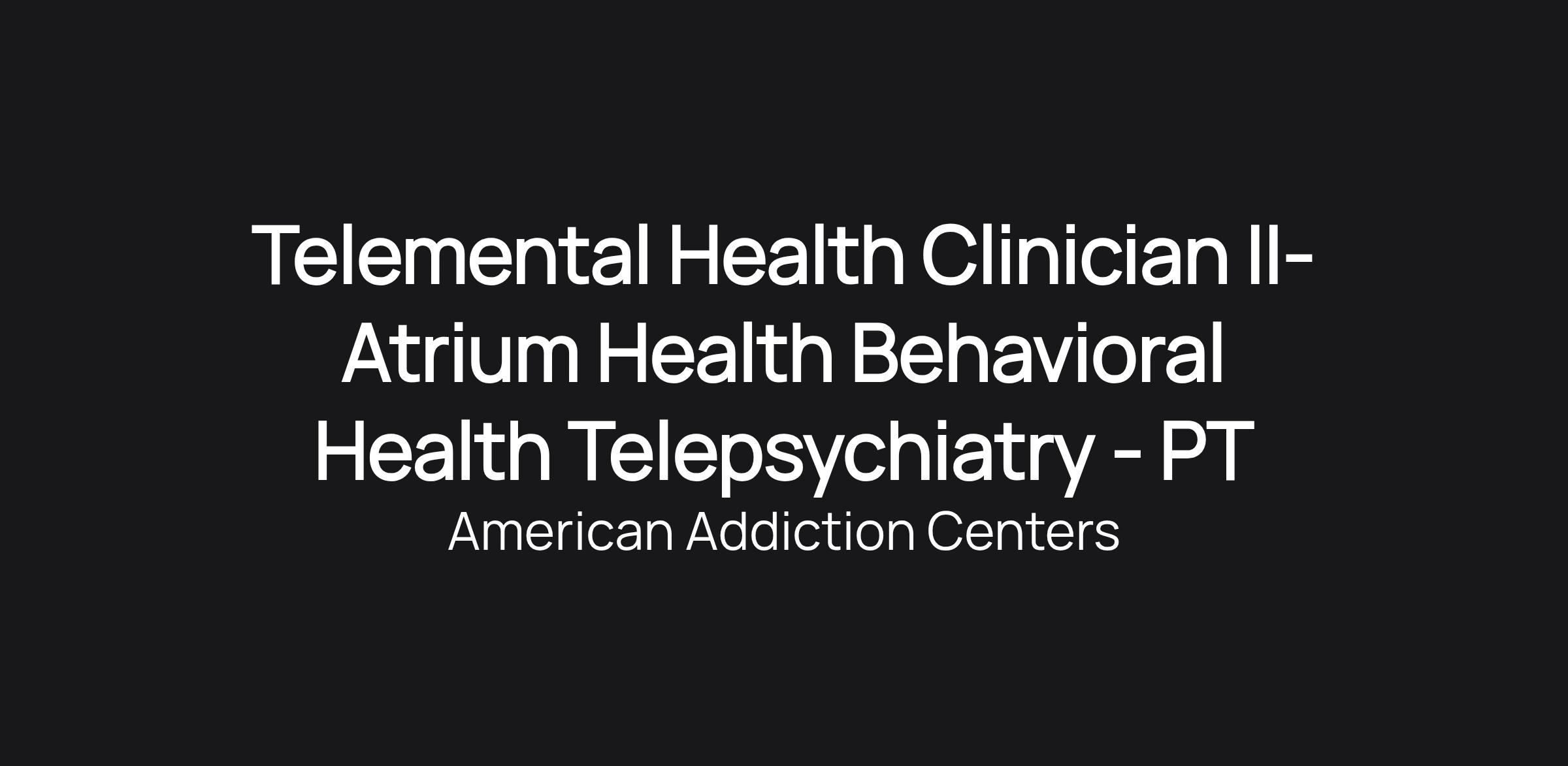 Telemental Health Clinician II- Atrium Health Behavioral Health Telepsychiatry - PT