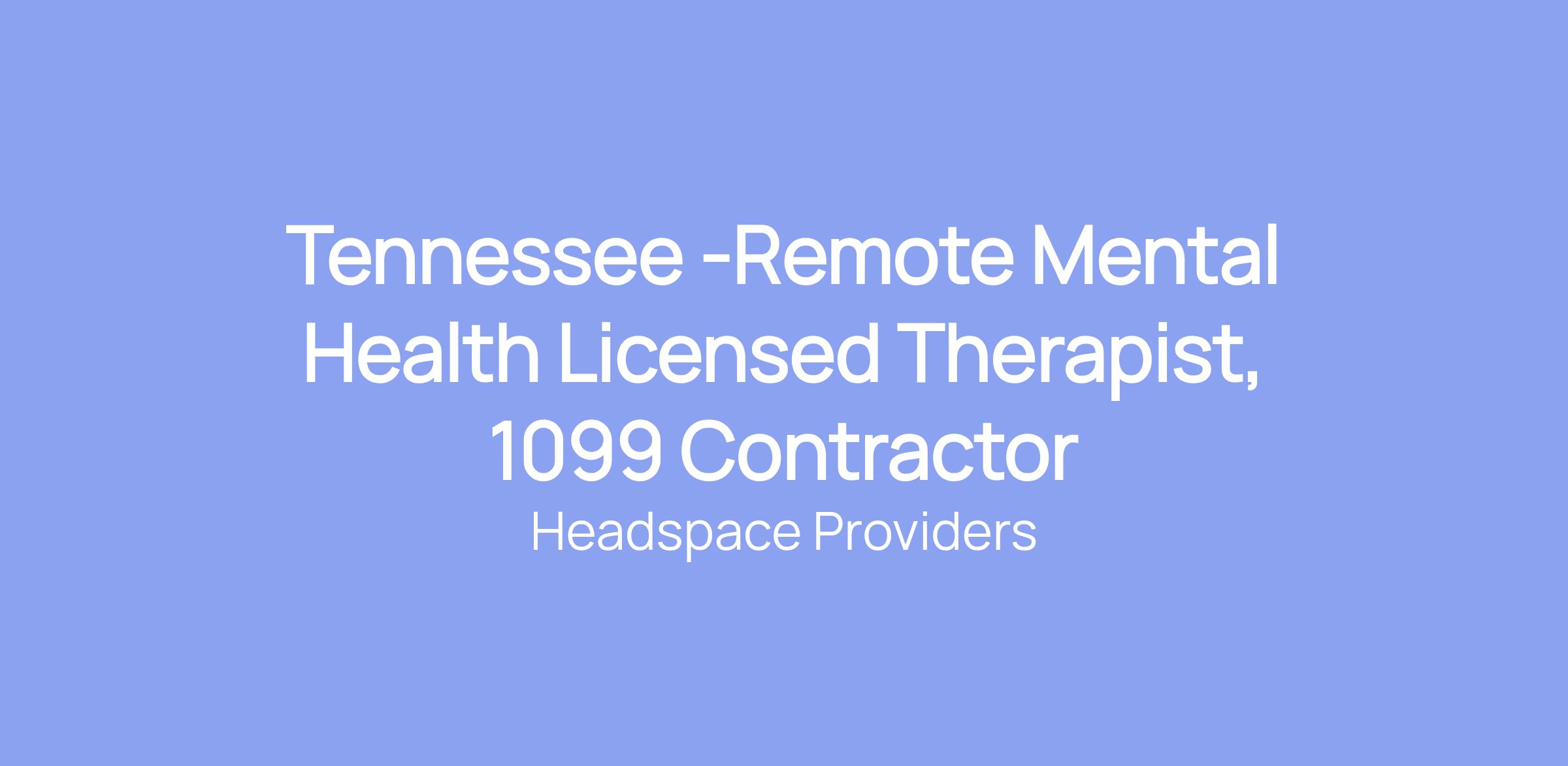 Tennessee -Remote Mental Health Licensed Therapist, 1099 Contractor