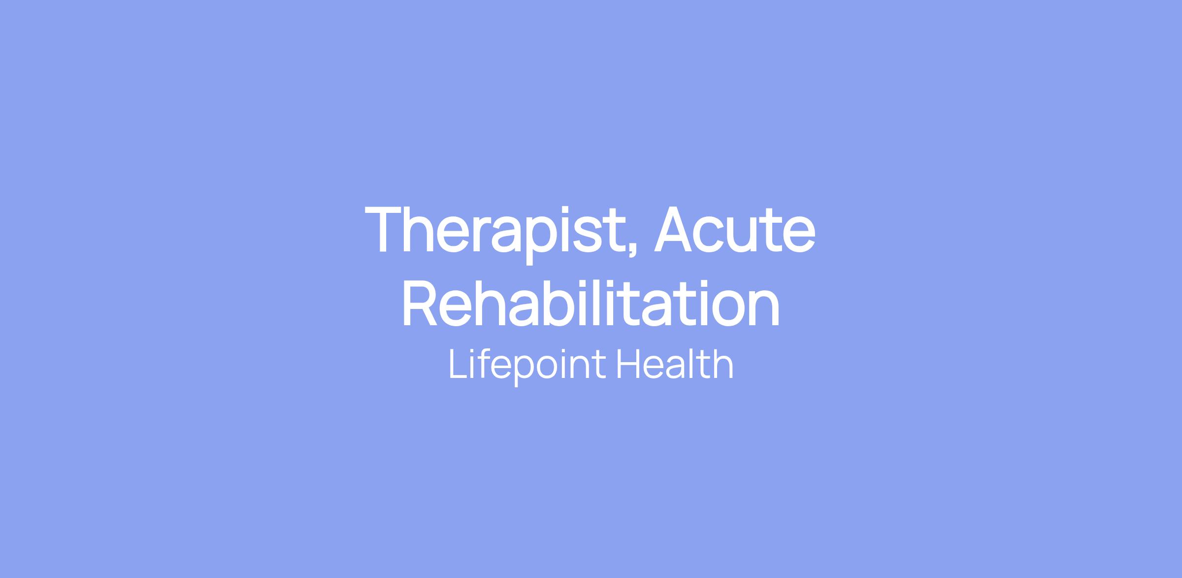 Therapist, Acute Rehabilitation