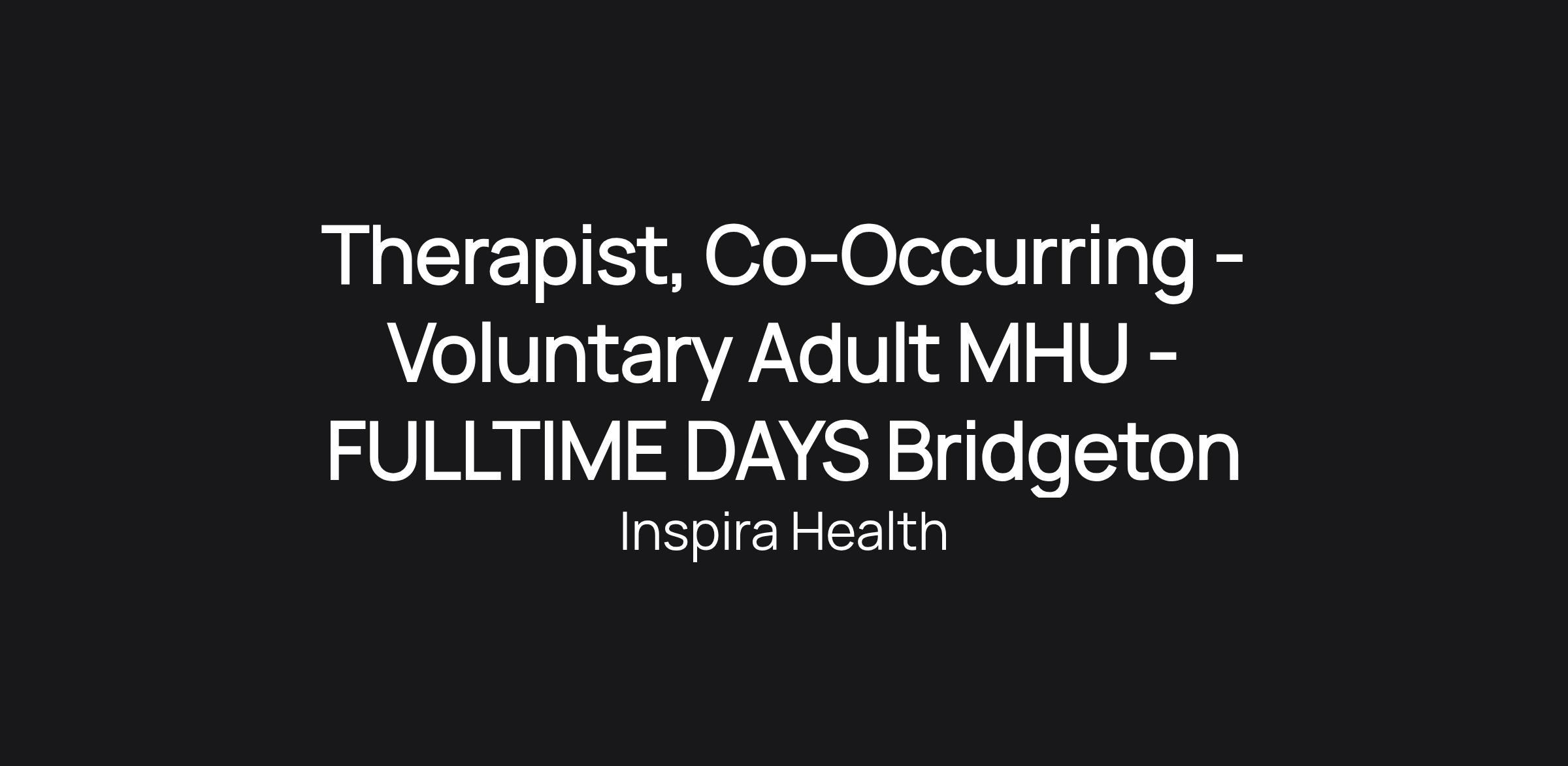 Therapist, Co-Occurring - Voluntary Adult MHU - FULLTIME DAYS Bridgeton