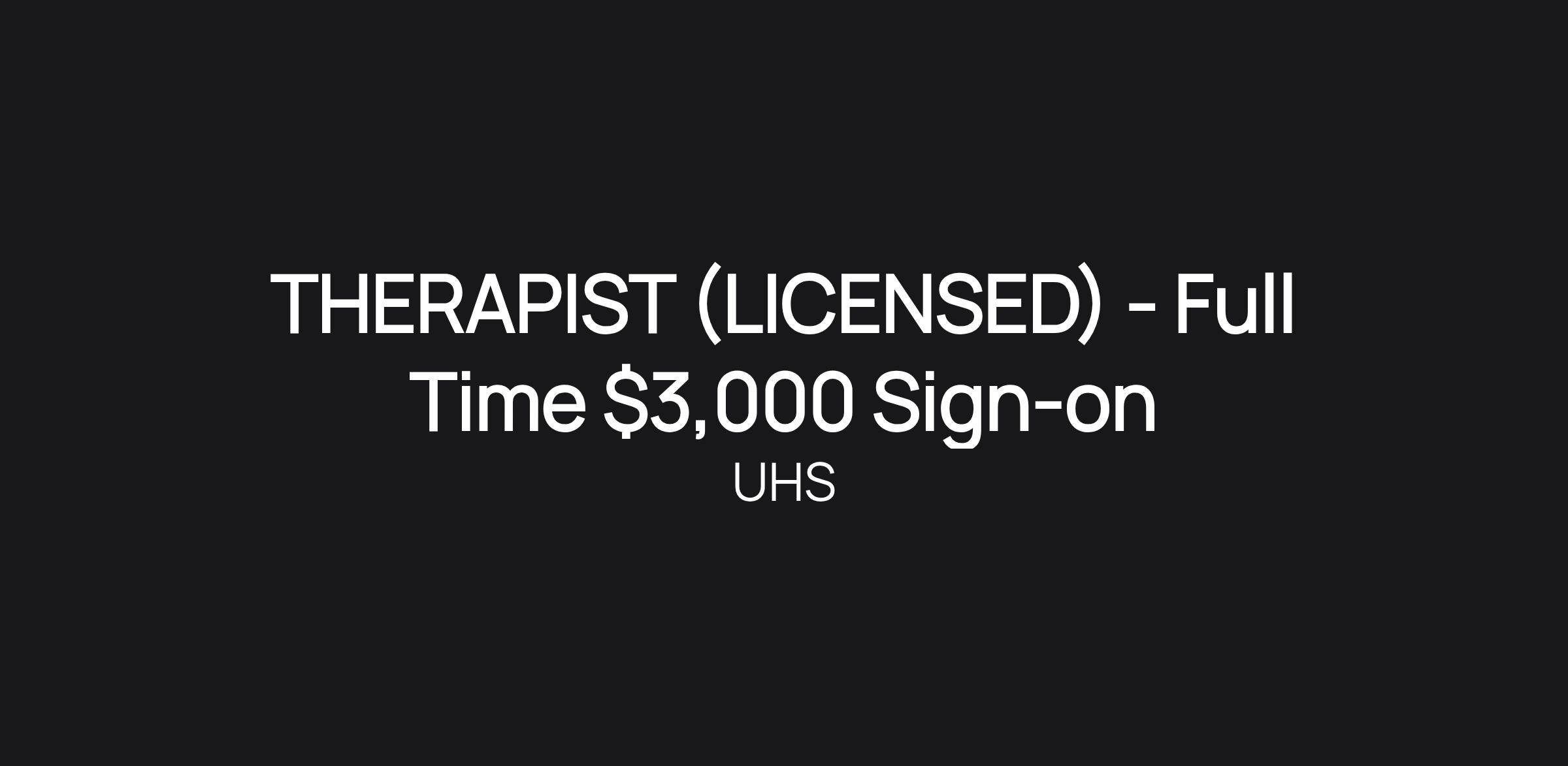 THERAPIST (LICENSED) - Full Time $3,000 Sign-on