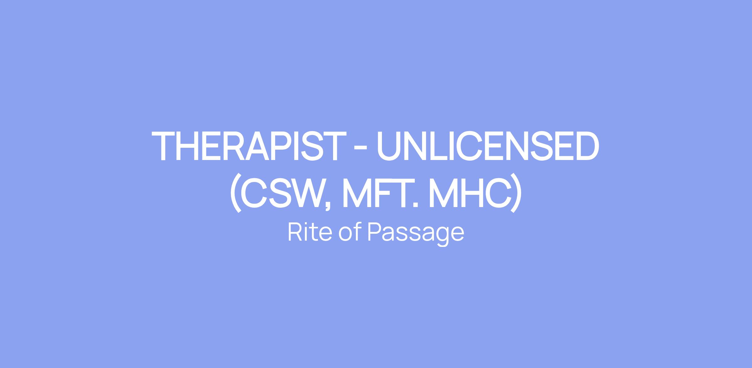 THERAPIST - UNLICENSED (CSW, MFT. MHC)