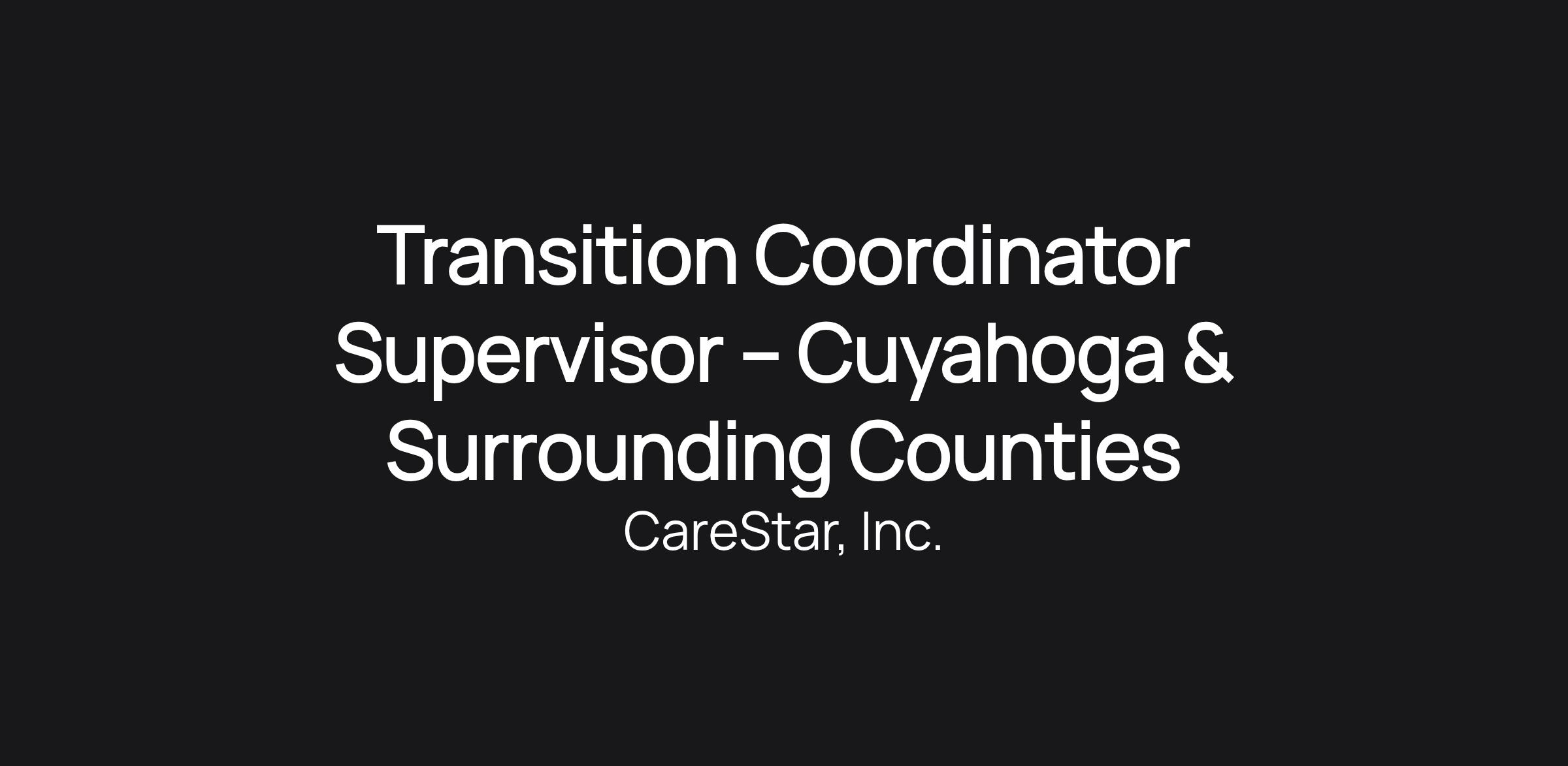 Transition Coordinator Supervisor – Cuyahoga & Surrounding Counties