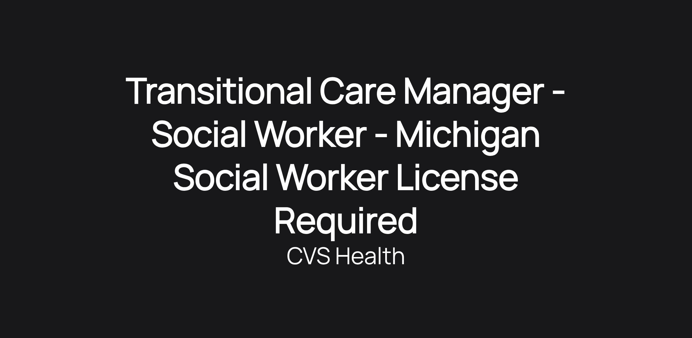 Title: Transitional Care Manager, Social Worker (Michigan License required)