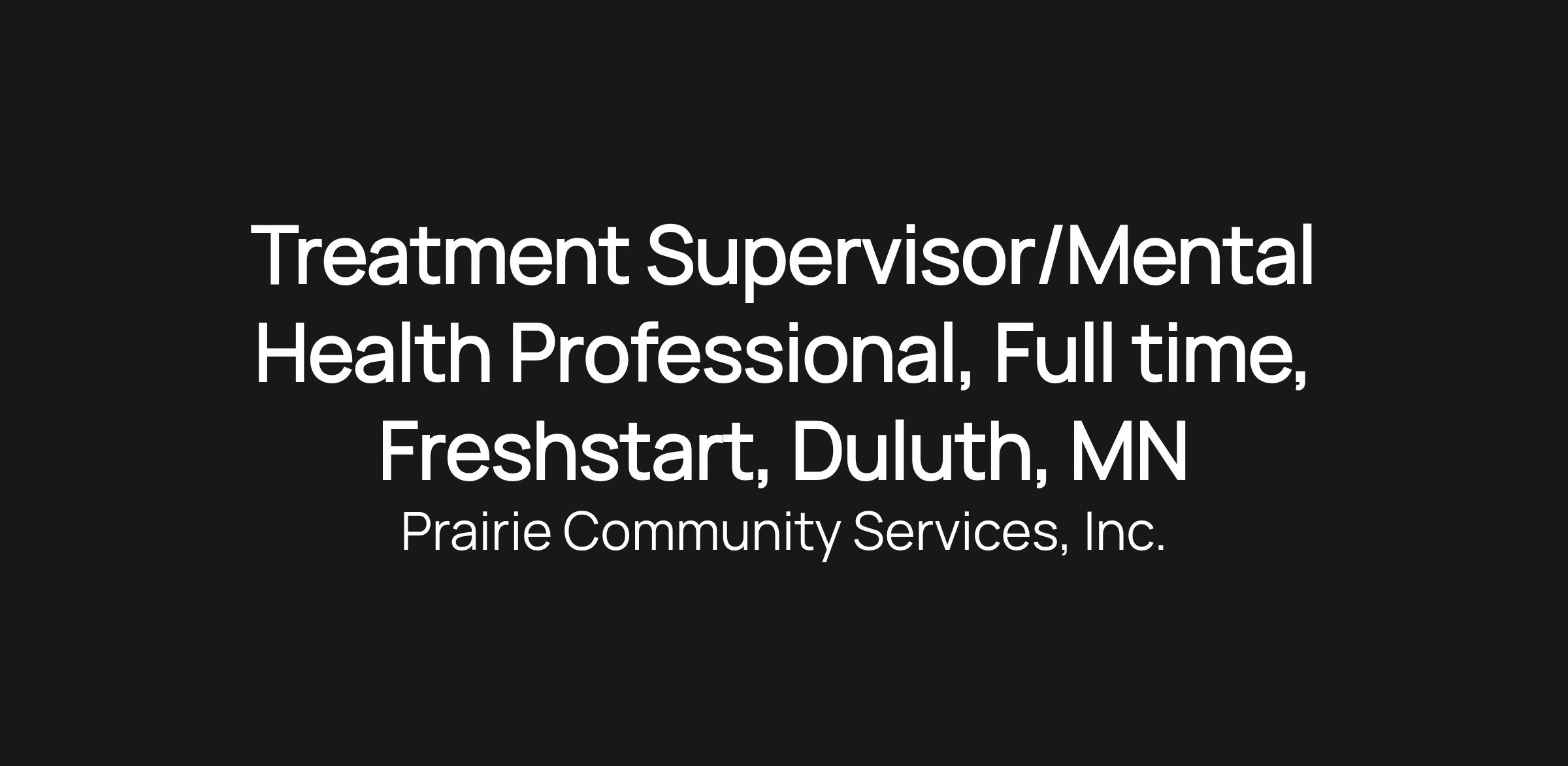 Treatment Supervisor/Mental Health Professional, Full time, Freshstart, Duluth, MN