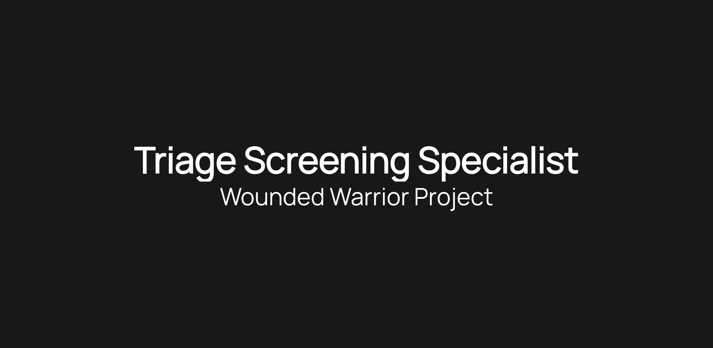 The Wounded Warrior Project (WWP) Triage Screening Specialist is an integral part of ensuring Alumni and Family Support Members are connected to resources that promote healthy living, while removing barriers to care, and acting as the conduit to the collaborative efforts of internal teammates and external WWP partners. The Wounded Warrior Project (WWP) Triage Screening Specialist is the primary point of contact for Warriors and Family Support Members interested in mental and/or brain health services. The Screening Specialist serves as subject-matter expert and resource in the planning, coordination, and execution of and participation in mental health programs at Wounded Warrior Project, throughout the organization. The Screening Specialist provides wounded warriors with comprehensive screening, needs assessment, and coordination of internal and external resources to support these warriors and enhance their resiliency and psychological well-being.