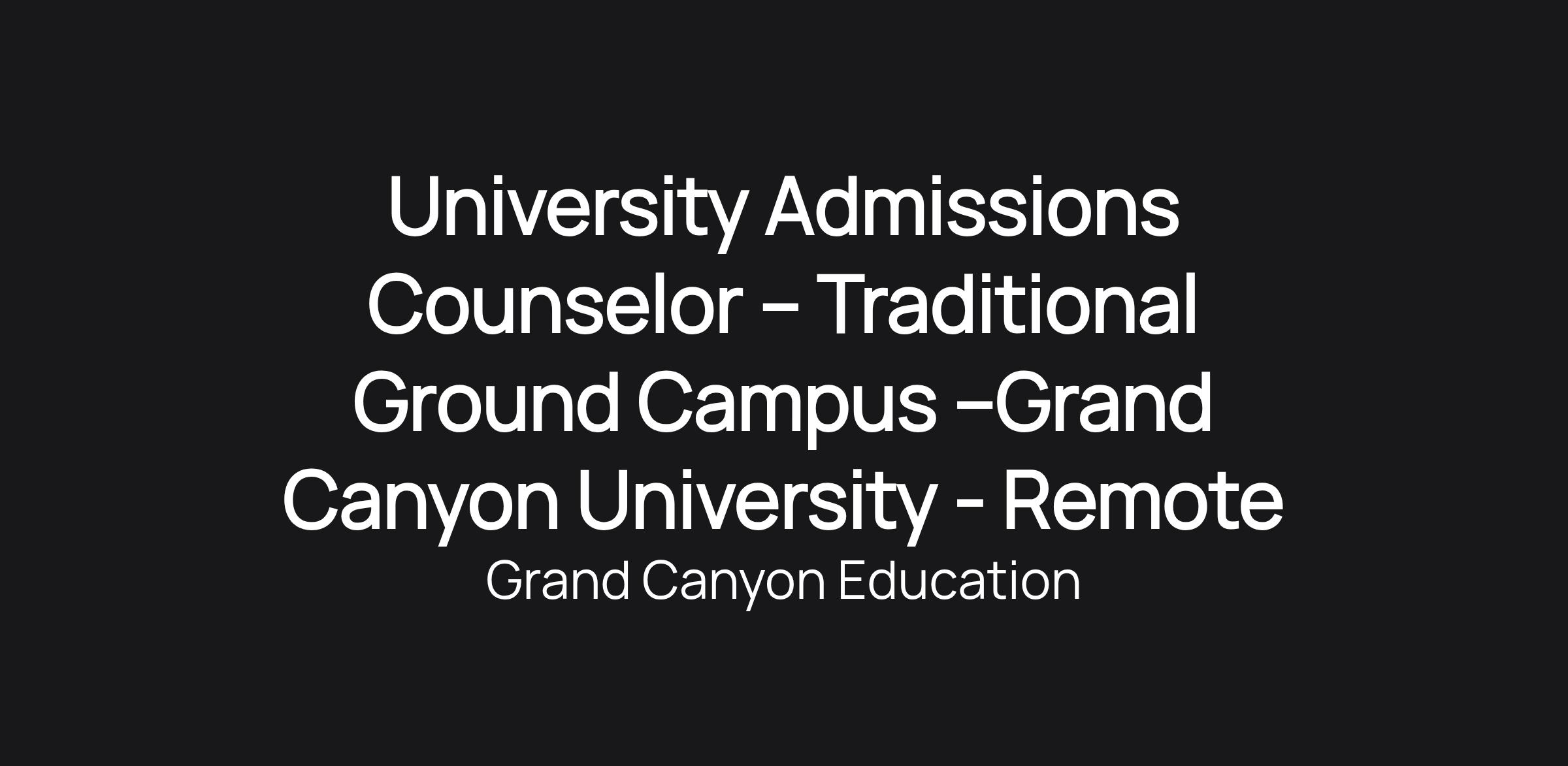 University Admissions Counselor – Traditional Ground Campus –Grand Canyon University - Remote