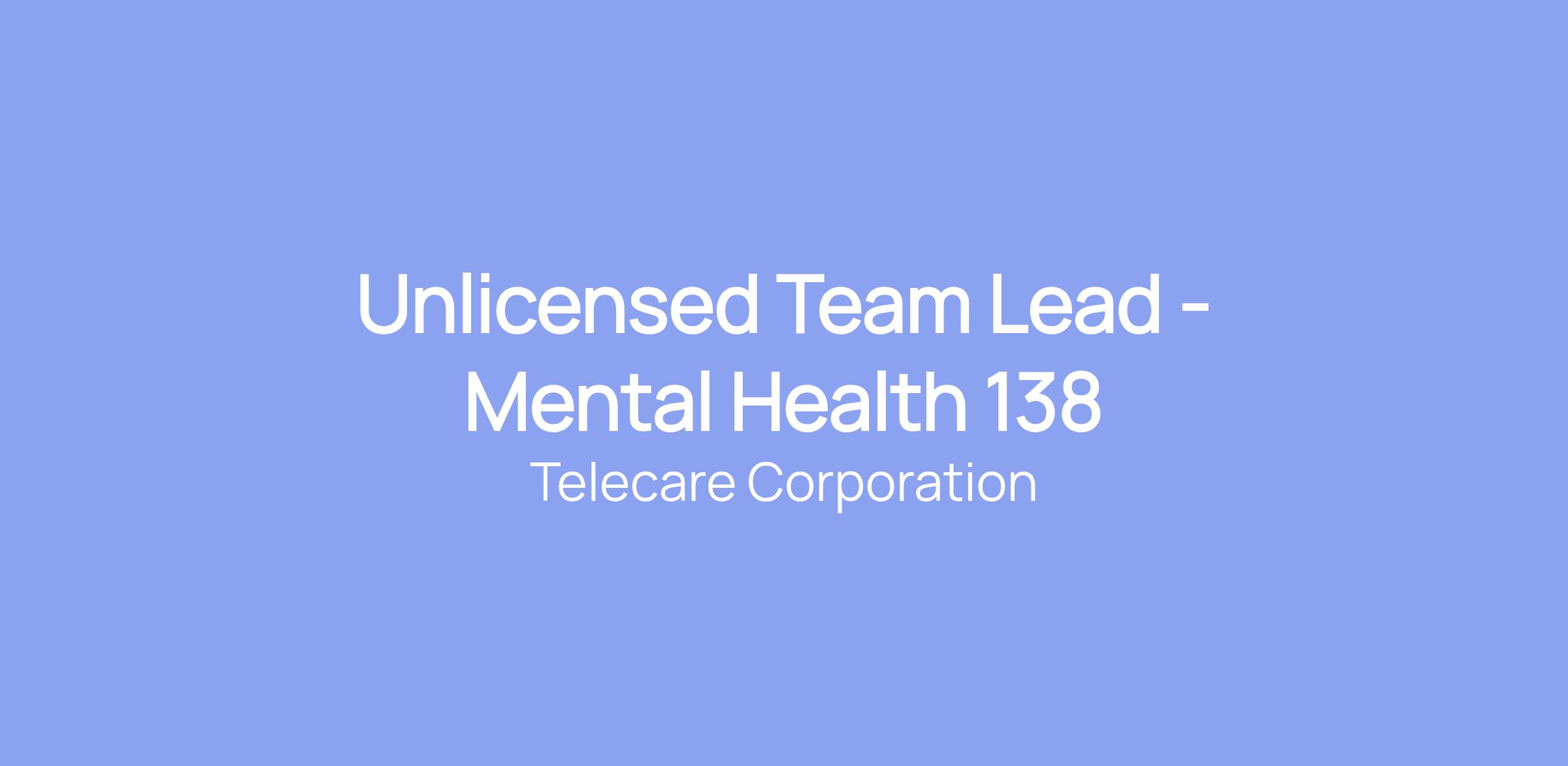 Unlicensed Team Lead - Mental Health 138