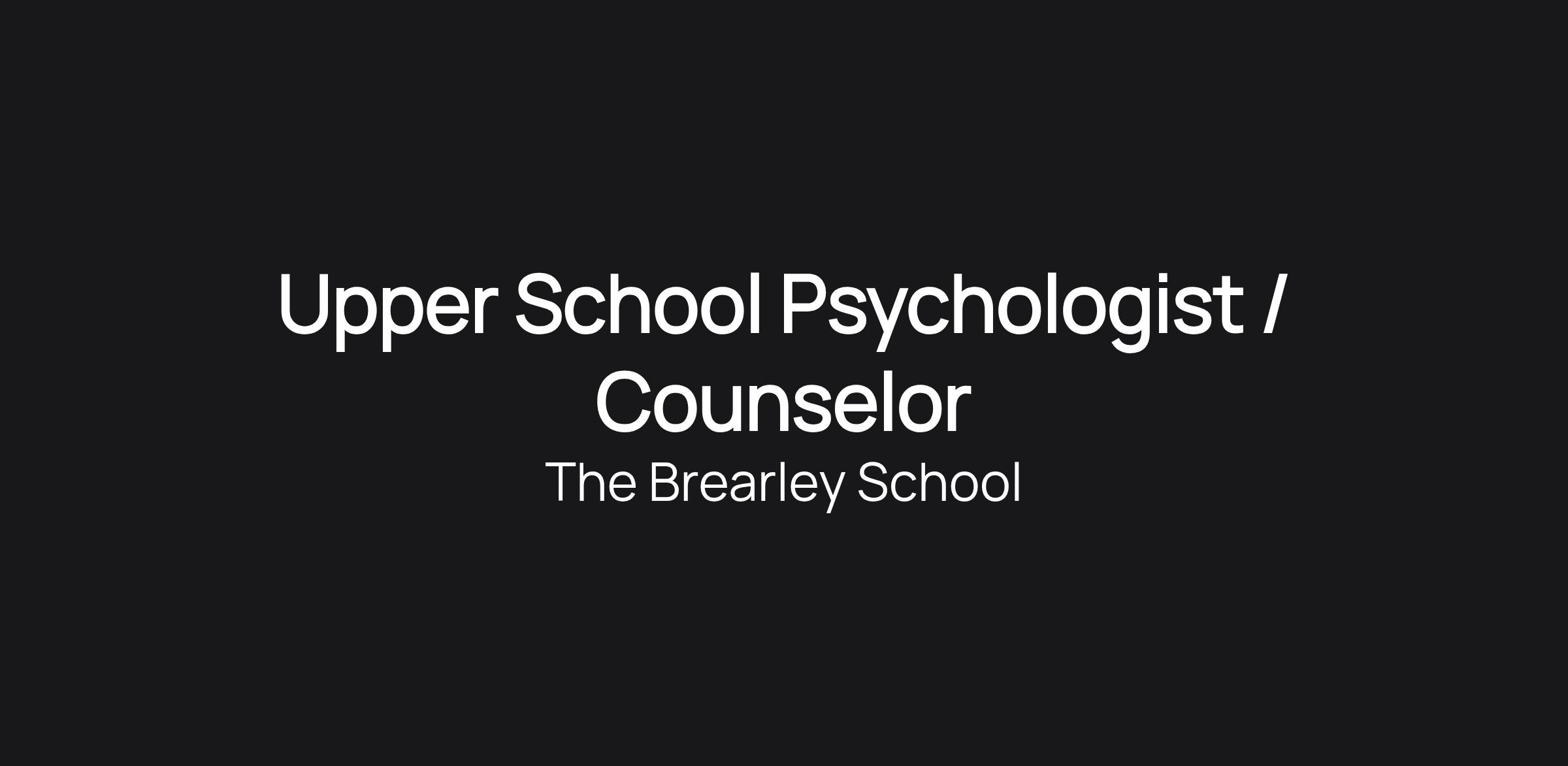 Upper School Psychologist / Counselor