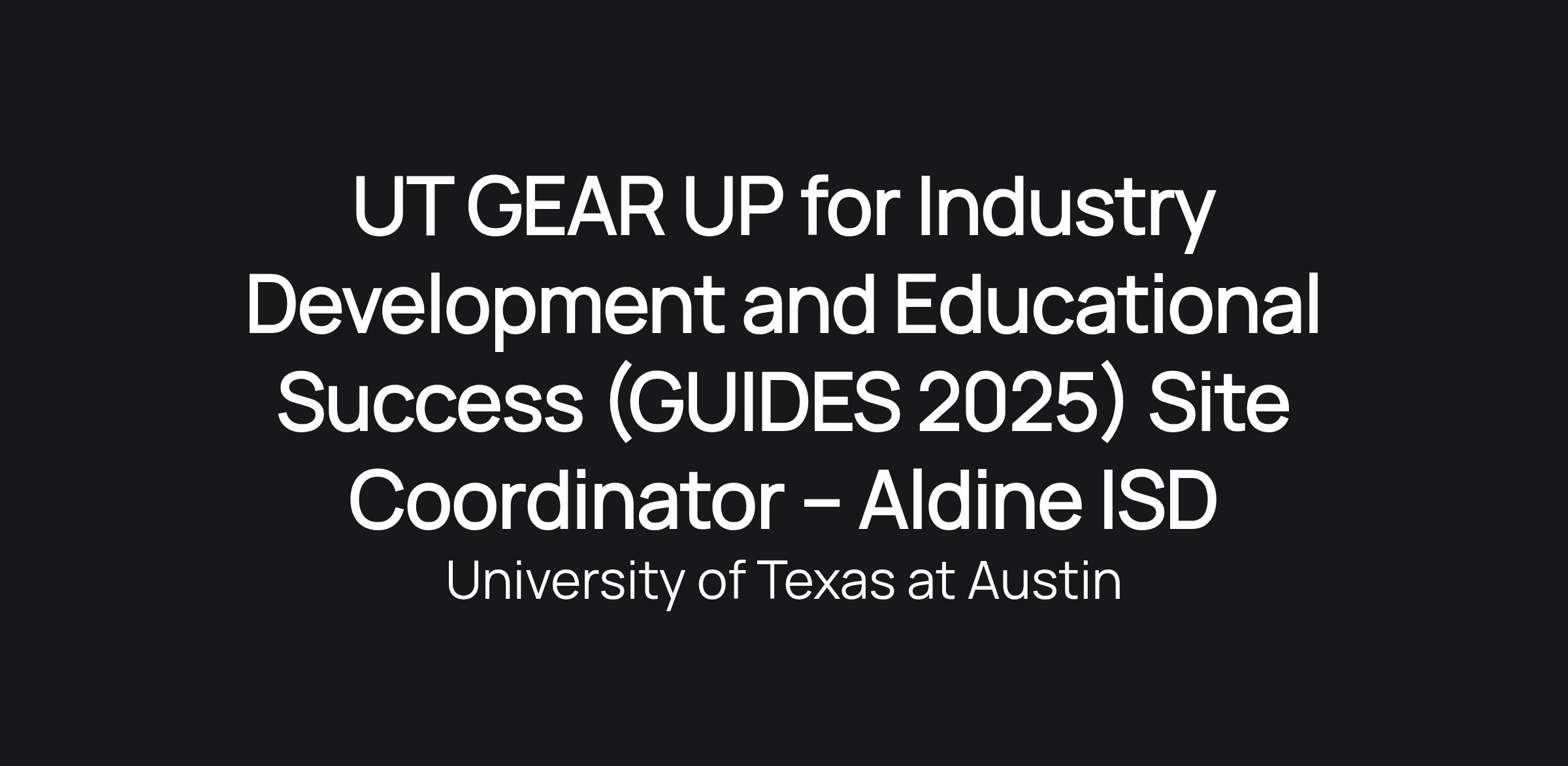 UT GEAR UP for Industry Development and Educational Success (GUIDES 2025) Site Coordinator – Aldine ISD