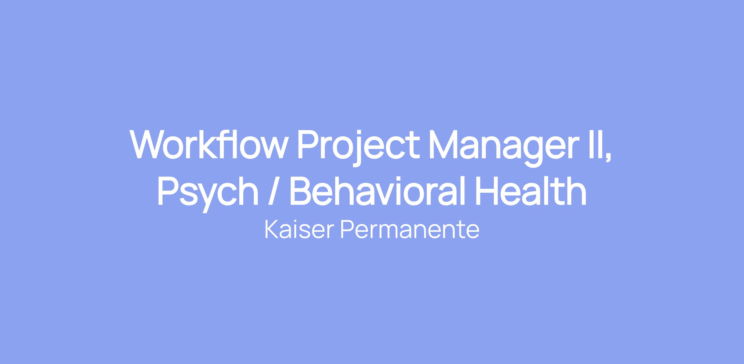 Workflow Project Manager II, Psych / Behavioral Health